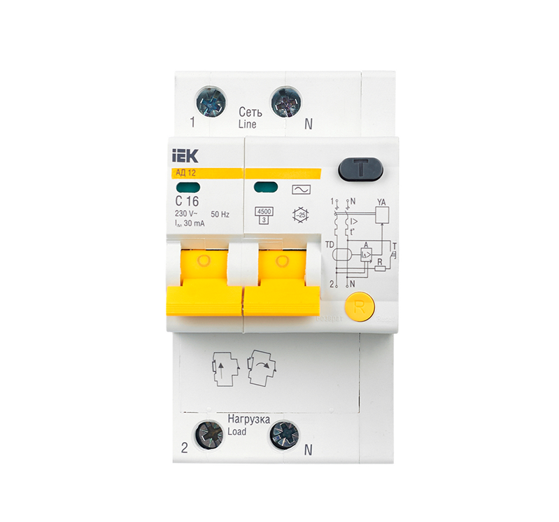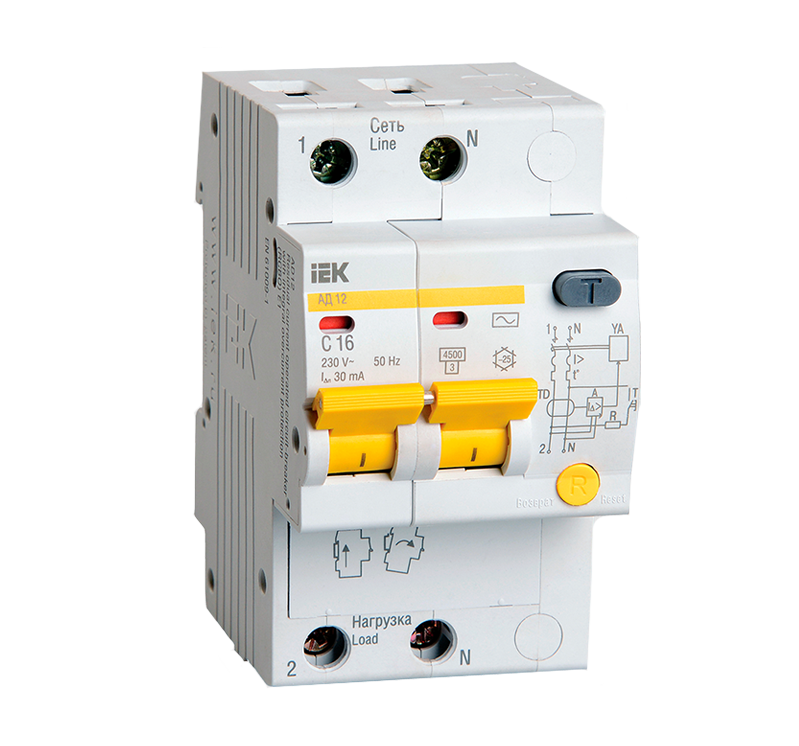 Дифференциальный автомат АД12 2P 16А — 63А 30мА тип AC